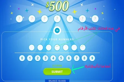 حيث تحصل كل مرة علي فرصة لربح مبالغ مالية وذلك فقط بإدخال الأرقام في الخانات علي هذا الشكل